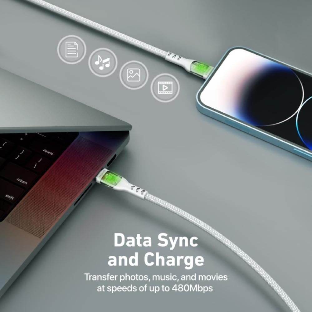 - دعم مزامنة البيانات والشحن بسرعة 480 ميجابت في الثانية: يدعم كابل لايتينينغ سريع الشحن هذا أيضًا سرعات نقل البيانات التي تصل إلى 480 ميجابت في الثانية بين أجهزة الكمبيوتر المحمولة الخاصة بك المزودة بمنافذ USB-C™ والهواتف الذكية أو الأجهزة اللوحية من أبل. وهذا يعني أنه يمكنك شحن الهاتف ونقل البيانات في نفس الوقت بسهولة باستخدام نفس الكابل.