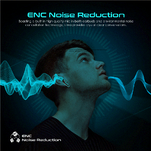سماعات أذن ENC عالية الوضوح لإلغاء الضوضاء: مع سماعات الأذن عالية الدقة وتقنية إلغاء الضوضاء (ENC)، تضمن Lima محادثات واضحة بفضل الميكروفون المدمج عالي الجودة في كل سماعة. تقوم هذه التقنية بإلغاء الضوضاء غير المرغوب فيها بفعالية، مما يسمح لك بالتمتع بجودة الصوت الممتازة دون تشويش من البيئة الخارجية.