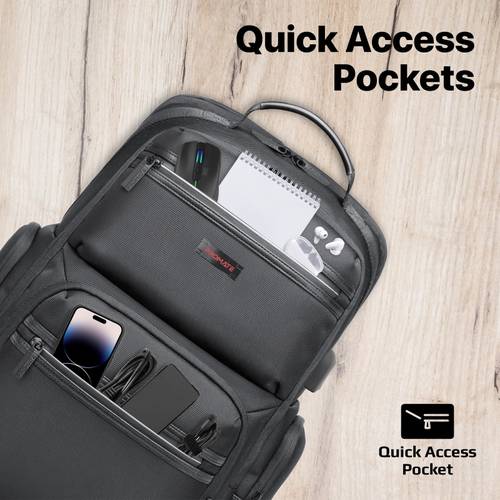 وصول سريع ومريح: توفر حقيبة ElitePack-Pro جيوب مصممة للوصول السريع، مما يتيح لك الوصول بسهولة إلى العناصر الأساسية مثل المفاتيح والمحافظ والهواتف الذكية دون الحاجة لتفتيش الحقيبة بالكامل. هذا التصميم يضمن لك الحفاظ على سير عملك بشكل سلس وفعال أثناء التنقل.
