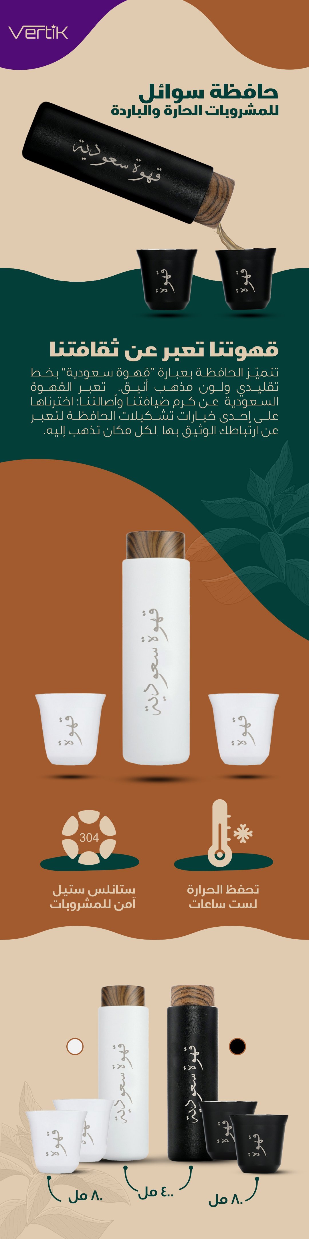 محفور عليه عبارة ( قهوة سعودية ) يحفظ الحرارة بين 4-6 ساعات
