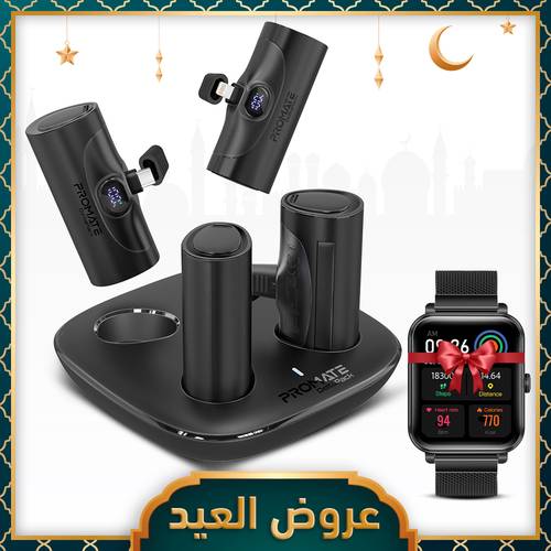 مجموعة بطاريات الفزعة - أربع بطاريات بسعة 5000 مللي أمبير مع قاعدة شحن وتوصيل طاقة بقدرة 20 واط PD مع بطاريتين USB-C وبطاريتين آيفون لايتينينج