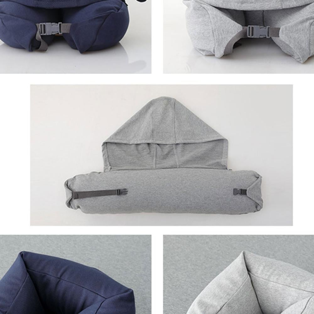 • تأتي الوسادة بغطاء رأس مخفي، والذي يساعدك على حجب الضوء عندما تستريح ويعمل كقناع للعين.