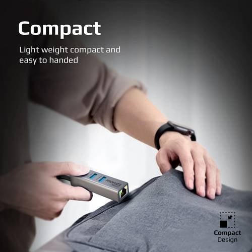 يحتوي جهاز Promate GigaHub-C على 3 منافذ USB 3.0 بسرعة عالية تصل إلى 5 جيجابت في الثانية لمزامنة البيانات ويوفر منفذ ايثرنت للوصول إلى شبكة الانترنت بسرعة فائقة.