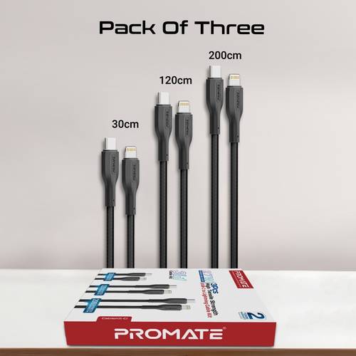 استمتع بمرونة ثلاثة كيابل USB-C™ إلى لايتنينغ عالية الجودة. مثالية لشحن أجهزة متعددة بشكل متزامن، تضمن هذه الكابلات أن تكون اجهزتك دائمًا مشحونًة ومتصلة. لا غنى عنها لدى أي عاشق للتكنولوجيا.