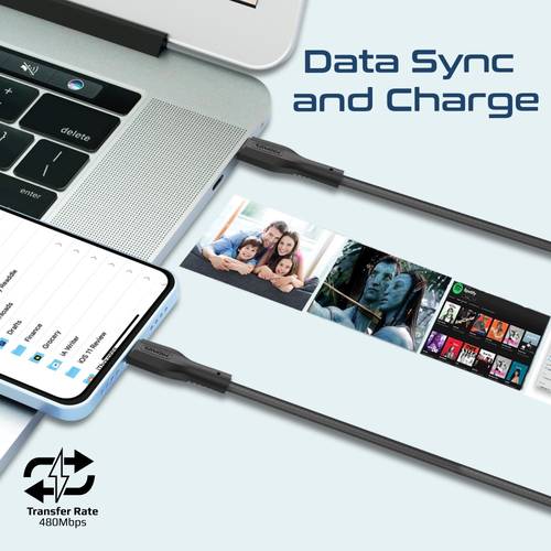 استمتع بشحن ونقل بيانات سلس بسرعة 480 ميجابت في الثانية. قم بنقل الملفات بسرعة مع الحفاظ على شحن أجهزتك في نفس الوقت.