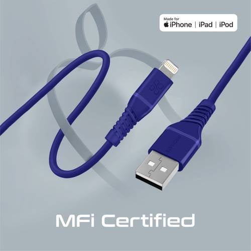 كابل شحن ونقل بيانات عالي الجودة مع موصل لايتينينغ، معتمد من MFi لضمان التوافق مع أجهزة Apple بطول 1.2 متر، تم اختباره بأكثر من 25000 انحناء لضمان المتانة والموثوقية، يأتي بملمس سيليكون ناعم لتجربة استخدام مريحة وسلسة