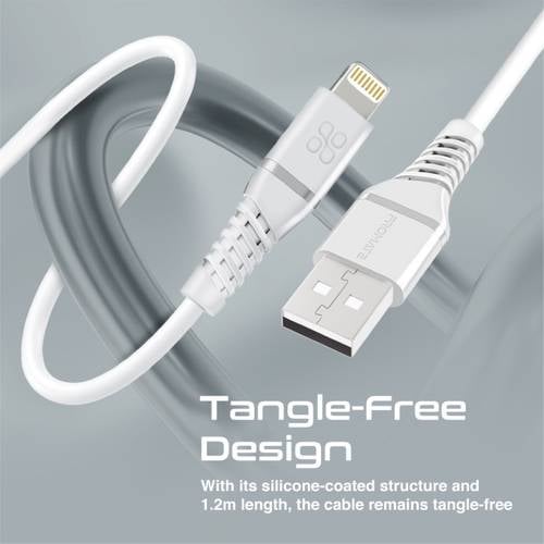 سلك بطول 1.2 متر مضاد للتشابك من السيليكون: كابل Promate PowerLine-Ai120 مصنوع من السيليكون الناعم، مما يجعله مريح للغاية لوضعه في حقيبتك أو جيبك دون القلق بشأن تشابك الأسلاك. طول مثالي يبلغ 4 أقدام وهو طويل بما يكفي لاستخدامه على مكتبك وقصير بما يكفي للشحن أثناء التنقل.