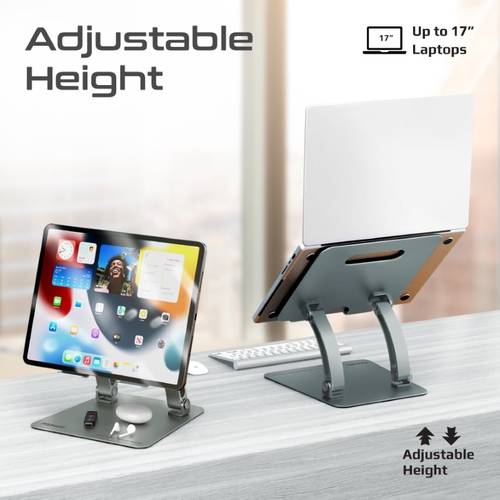 تجربة مريحة مع حامل كمبيوتر محمول متعدد المستويات من الألومنيوم، مصمم ليناسب أجهزة الكمبيوتر المحمولة بحجم 10 إلى 17 بوصة ويتميز بإرتفاع قابل للتمديد وتصميم قابل للطي لسهولة التخزين والحمل