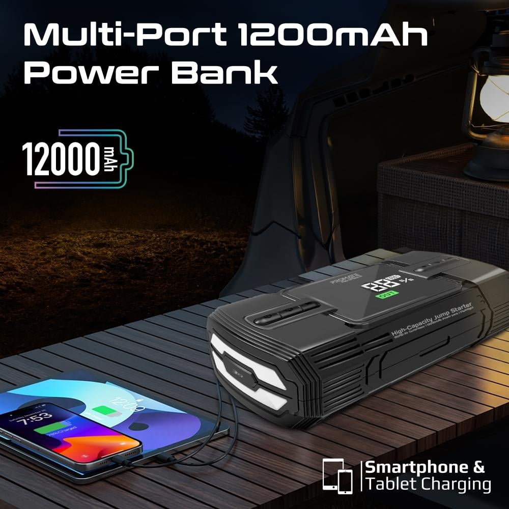 - تيار ذروة 1200 أمبير/12 فولت: يتميز هذا الجهاز بتيار ذروة قدره 1200 أمبير/12 فولت، مما يوفر قوة كافية لتشغيل السيارات والدراجات النارية ذات المحركات الكبيرة بكل سهولة.