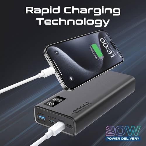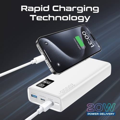 يمتاز Bolt-20PD بسعة بطارية تبلغ 20000 مللي أمبير توفر طاقة كاملة لأجهزتك المختلفة وتشحنها بسرعة أكبر من البطارية العادية.