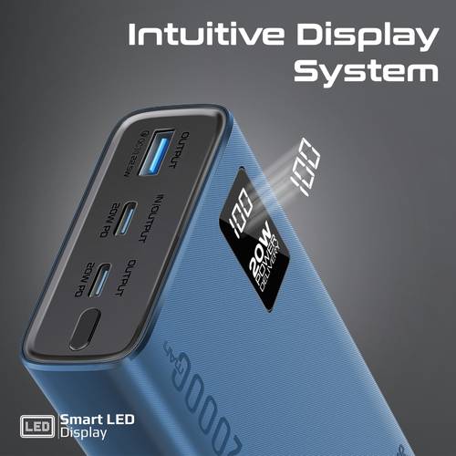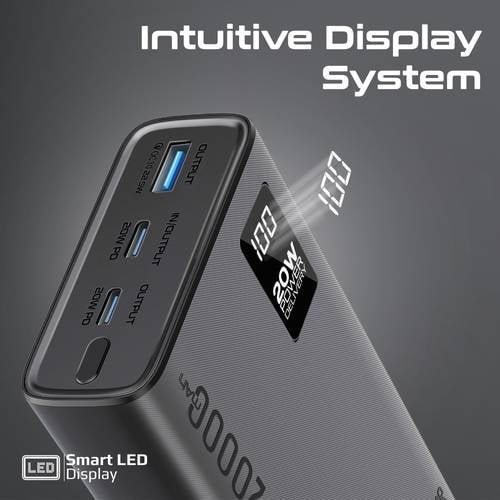 بطارية متنقلة صغيرة بسعة 20000 مللي أمبير، مع منفذ USB-C™ بقوة 20 واط للدخل/للخرج، مخرج QC 3.0، شاشة LCD مع حماية من السخونة الزائدة للهواتف الذكية والأجهزة اللوحية