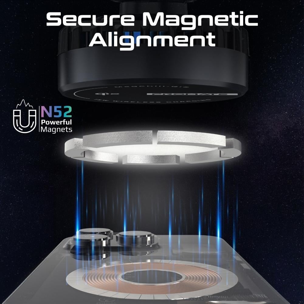 يتميز MagChill-Qi2 بوظيفة تبريد ذاتي متطور، والتي تحافظ على برودة جهازك حتى 15 درجة أثناء الشحن. ودّع مشاكل السخونة الزائدة، حتى في أكثر بيئات السيارات حرارة يبقى جهازك باردًا ومشحونًا، بغض النظر عن المناخ.
