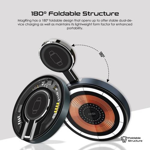 ودّع فوضى الكابلات واستمتع بتجربة شحن متكاملة مع MagRing! هذه المحطة الفريدة تجمع بين شحن هاتفك الذكي وساعة Apple Watch في وقت واحد، بفضل وحدة شحن ماج سيف بقدرة 15 واط وشاحن مغناطيسي مخصص لساعة أبل بقدرة 3 واط. بتصميم شفاف ونحيف قابل للطي بزاوية 180 درجة، تمنحك MagRing حرية ومرونة لا مثيل لها في الشحن والاستخدام اليومي! 🚀🔄