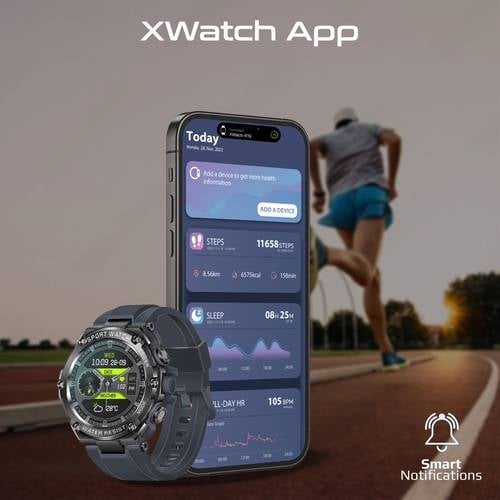 تطبيق XWatch متاح على PlayStore وApp Store: قم بتنزيل تطبيق XWatch وتثبيته على هاتفك. سيسمح لك تطبيق XWatch بتحديد أهداف لياقتك البدنية وتتبع تقدمك ومشاركة التقدم مع الأصدقاء والمزيد. هذا التطبيق متاح على كل من PlayStore وكذلك Apple App Store وهو متوافق مع Android وiOS.
