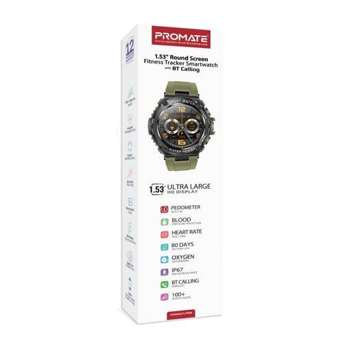 ساعة ذكية رياضية أنيقة مع اتصال بلوتوث: Promate XWatch-R19 هي ساعة ذكية أنيقة ورياضية ذات شاشة مستديرة. تم تصميمها لتكون رفيقك المثالي في المغامرة، تحتوي هذه الساعة على مستشعر معدل ضربات القلب ومستشعر عداد الخطى ومستشعر مستوى الأكسجين في الدم ومتتبع الصحة ومتتبع النوم. تتصل ساعة XWatch-R19 الذكية بهاتفك الذكي عبر تقنية بلوتوث5.1 وتوفر مكالمات بلوتوث فعالة بدون استخدام اليدين.