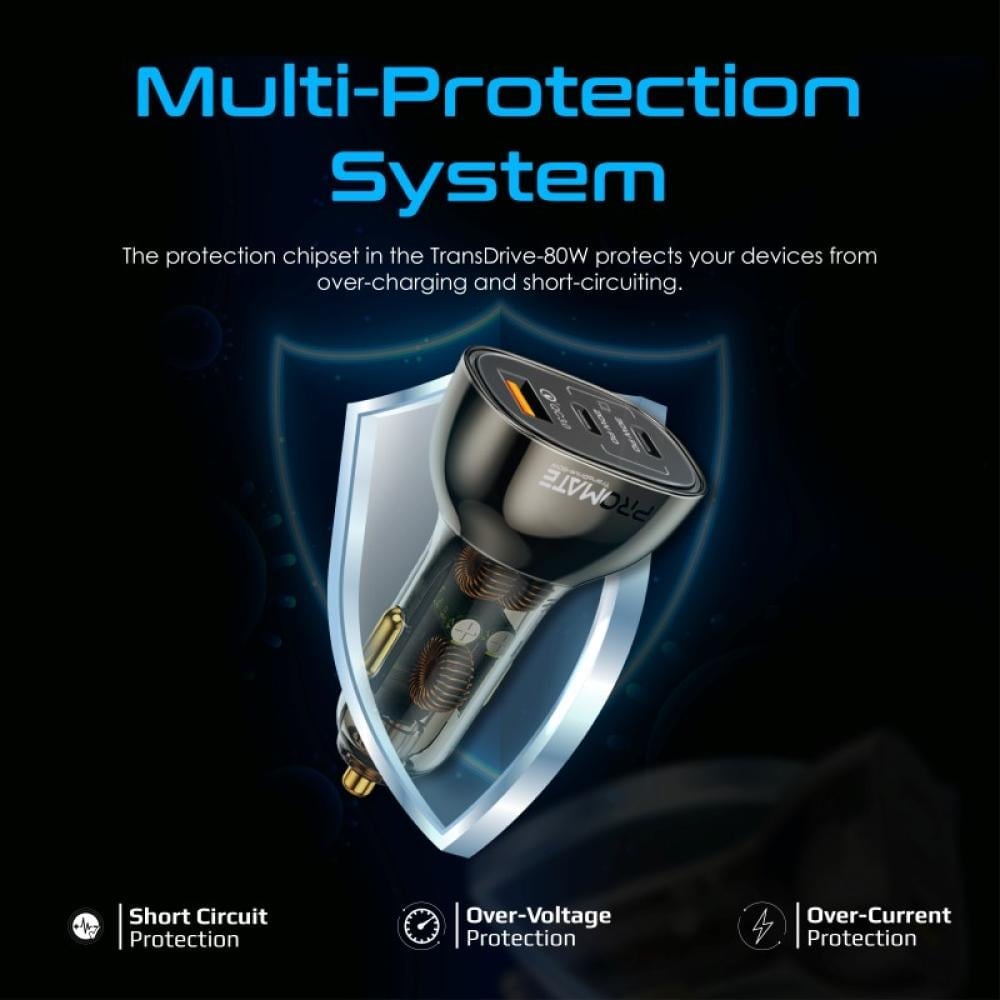 - نظام الحماية المتعددة: تعمل شريحة الحماية الموجودة في TransDrive-80W على حماية أجهزتك من الشحن الزائد والدوائر الكهربائية القصيرة.