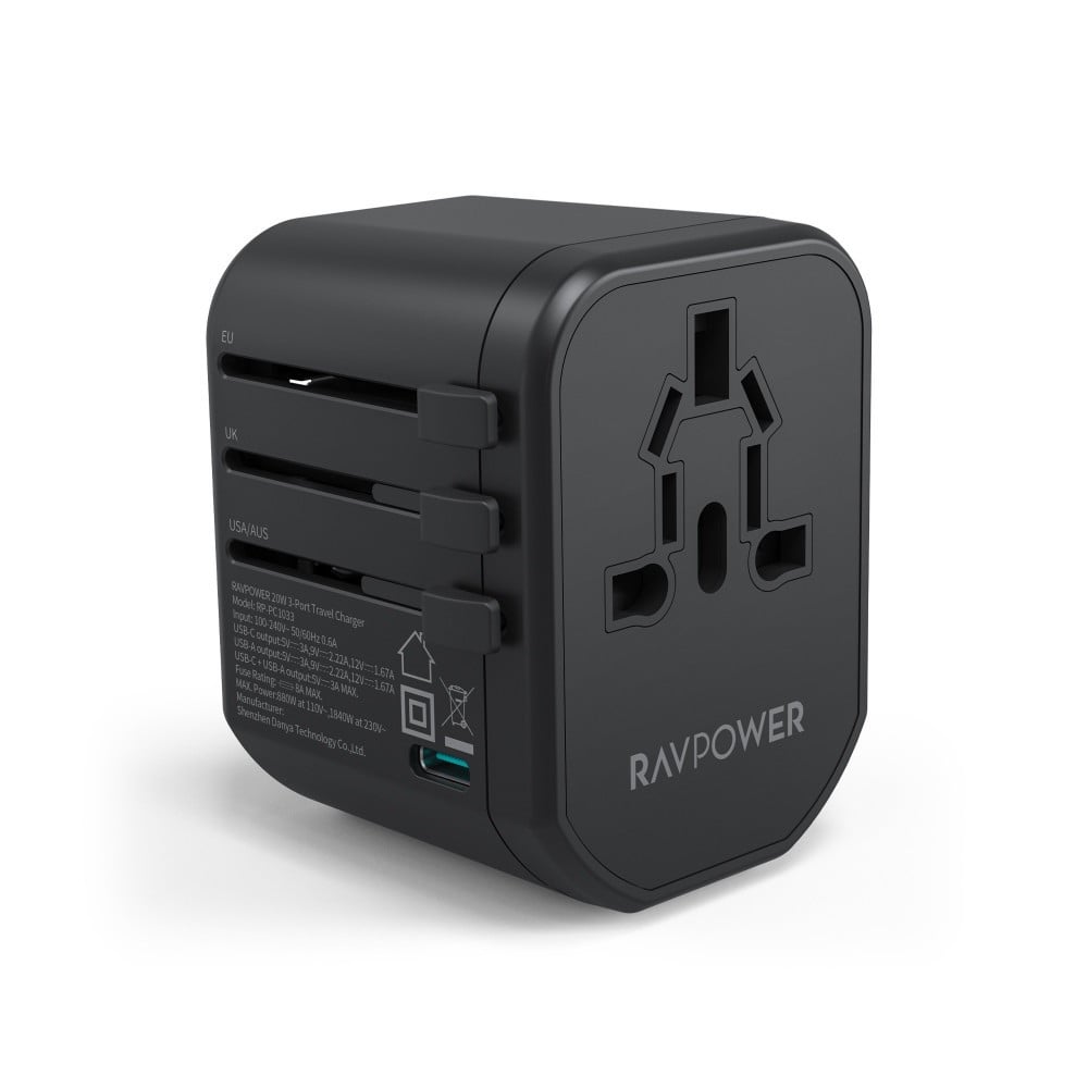 شاحن السفر من راف باور بقوة 20 واط يشحن 3 اجهزة في وقت واحد مع منفذين يو اس بي بإمكانك شحن هاتفك وجهاز الكمبيوتر المحمول وسماعات الأذن كلها مرة واحدة بكل امان