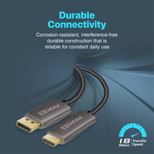يدعم كابل DisplayPort إلى HDMI سرعة نقل النطاق الترددي التي تصل إلى 18 جيجابت في الثانية. مع هذا الكابل لن تواجه أي تأخير في الصورة أو تباطؤ في الألعاب سريعة الوتيرة. استمتع بلعب أكثر مرونة وتفاصيل أكبر وتجربة غامرة للألعاب أو مشاهدة الأفلام.
