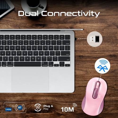 أحدث وأجمل ماوس بصري لاسلكي مزدوج الوضع مع اتصال بلوتوث بدقة 800/1200/1600 نقطة في البوصة ووقت عمل 150 ساعة مع دعم التوصيل والتشغيل