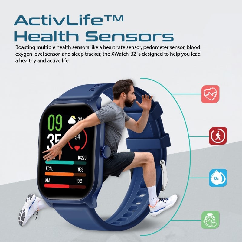 مستشعرات الصحة ActivLife™: تتميز XWatch-B2 بأجهزة استشعار صحية متعددة مثل مستشعر معدل ضربات القلب ومستشعر عداد الخطى ومستشعر مستوى الأكسجين في الدم ومتتبع النوم، تم تصميمها لمساعدتك على عيش حياة صحية ونشطة.
