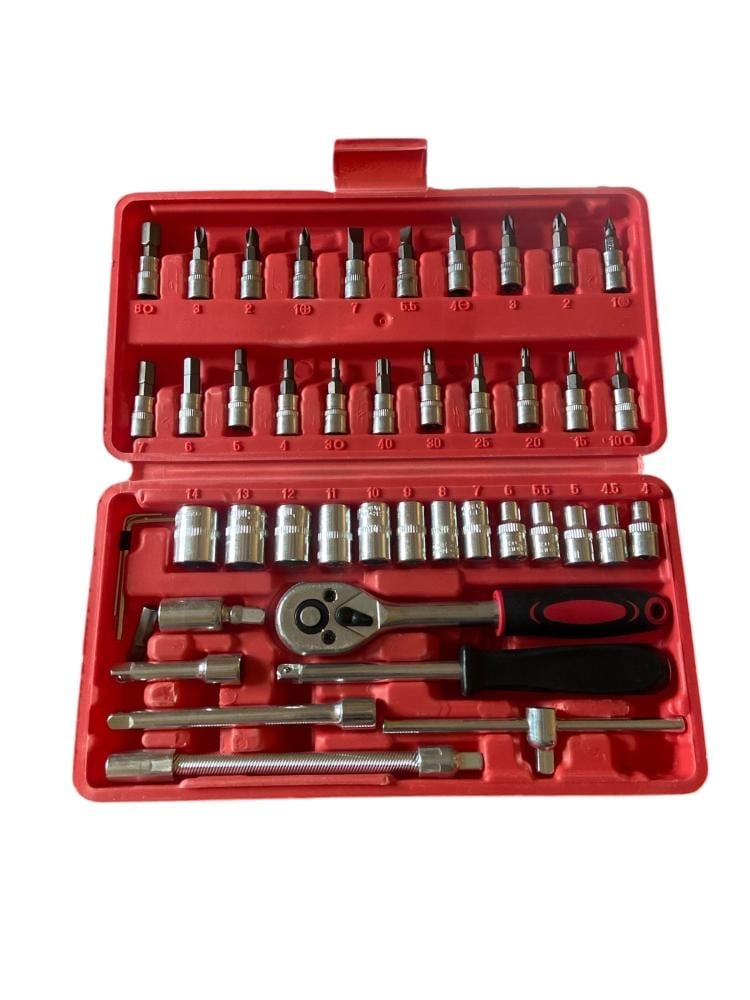 • تحتوي المجموعة على 13 قطعة من مقابس DR مقاس 1/4 بوصة من 4 مم إلى 14 مم، قطعة واحدة من مقابس بت DR مقاس 1/4 بوصة 21 قطعة من 3 قطع من سداسي كاي وينس، قطعة واحدة من الوصلة العالمية، قطعة واحدة من قضيب انحياز، قطعتان من مقبض السقاطة السريع، قطعة واحدة من مقبض التمديد المرن ومقبض الدوران.