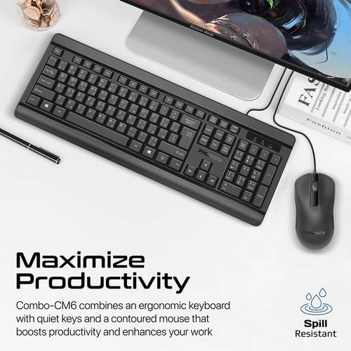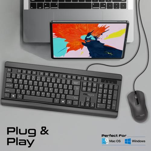 عزز إنتاجيتك مع لوحة المفاتيح Promate Combo-CM6 كاملة الحجم والفأرة عالية الدقة، حيث يجمع التصميم الأنيق بين الأداء الفعال والشكل العصري.