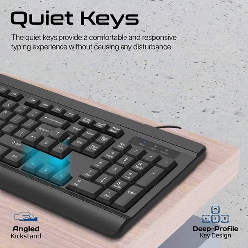 قم بتوصيل كابل USB بطول 1.5 متر بجهازك وابدأ الكتابة والنقر على الفور، دون الحاجة لتثبيت برامج إضافية أو القلق بشأن عمر البطارية مع هذه المجموعة السلكية.