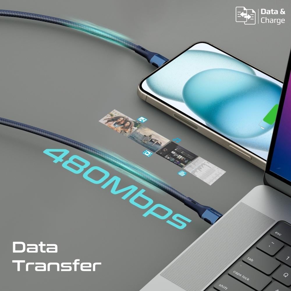 - نقل بيانات بسرعة 480 ميجابت في الثانية: استمتع بنقل البيانات بسلاسة وسرعة تصل إلى 480 ميجابت في الثانية، مما يتيح لك تبادل الملفات الكبيرة ومزامنة أجهزتك بفعالية.