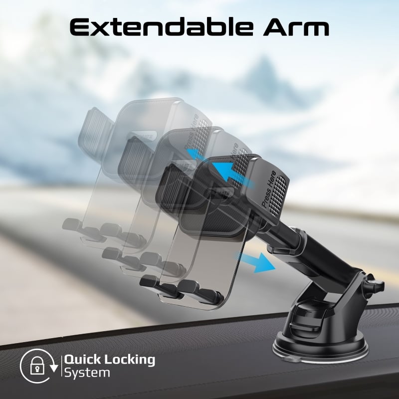 ارفع تجربة القيادة الخاصة بك مع ميزة الذراع القابلة للتخصيص والقابلة للتمدد، مما يتيح لك ضبط الحامل دون عناء على الوضع المثالي لجهازك. سواء كنت تقود بمفردك أو مع الركاب فإن الذراع القابل للتمديد يوفر مرونة إضافية، مما يضمن تمتع الجميع بزاوية رؤية مثالية لتعزيز الراحة طوال الرحلة.
