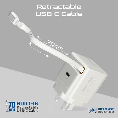 Cubix-R65 – شاحن GaN فائق السرعة بقوة 65 واط مع كابل USB-C قابل للسحب