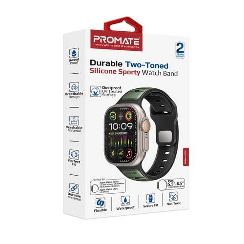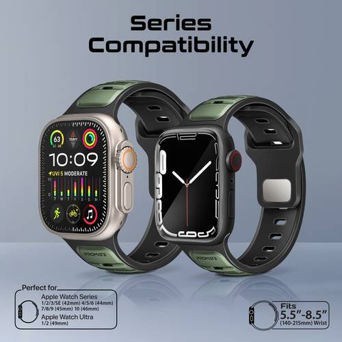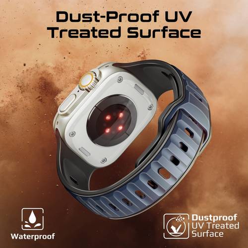 سوار رياضي لساعة أبل بتصميم ثنائي اللون أنيق، مع سطح مقاوم للغبار والأشعة فوق البنفسجية. مصنوع من سيليكون عالي الجودة ومشبك فولاذي مقاوم للصدأ، متوافق مع جميع ساعات ابل ألترا بحجم: 42/44/45 مم/49 م
