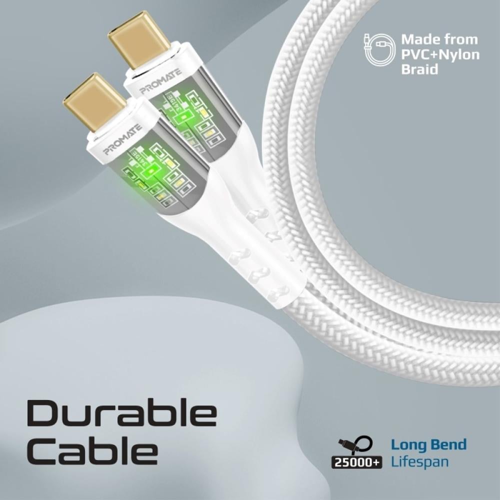 تم اختبار Promate TransLine-CC200 للانحناء لتحمل أكثر من 25000 انحناء. تم تصميم كابل USB-C ™ المجدول من النايلون هذا لتحمل أقصى قدر من الضغط والإجهاد.