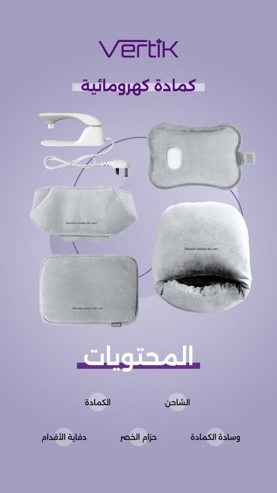 تعاني من آلام الدورة الشهرية أو آلام العضلات والمفاصل، وتبحثين عن وسيلة فعالة للتخفيف من هذه الآلام وتنشيط الدورة الدموية؟ الكمادة الكهرومائية من Vertik هي الحل الأمثل .