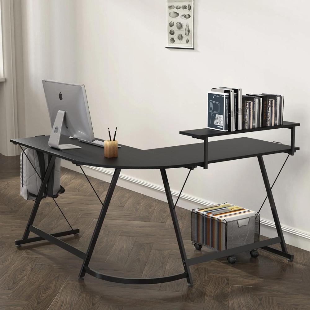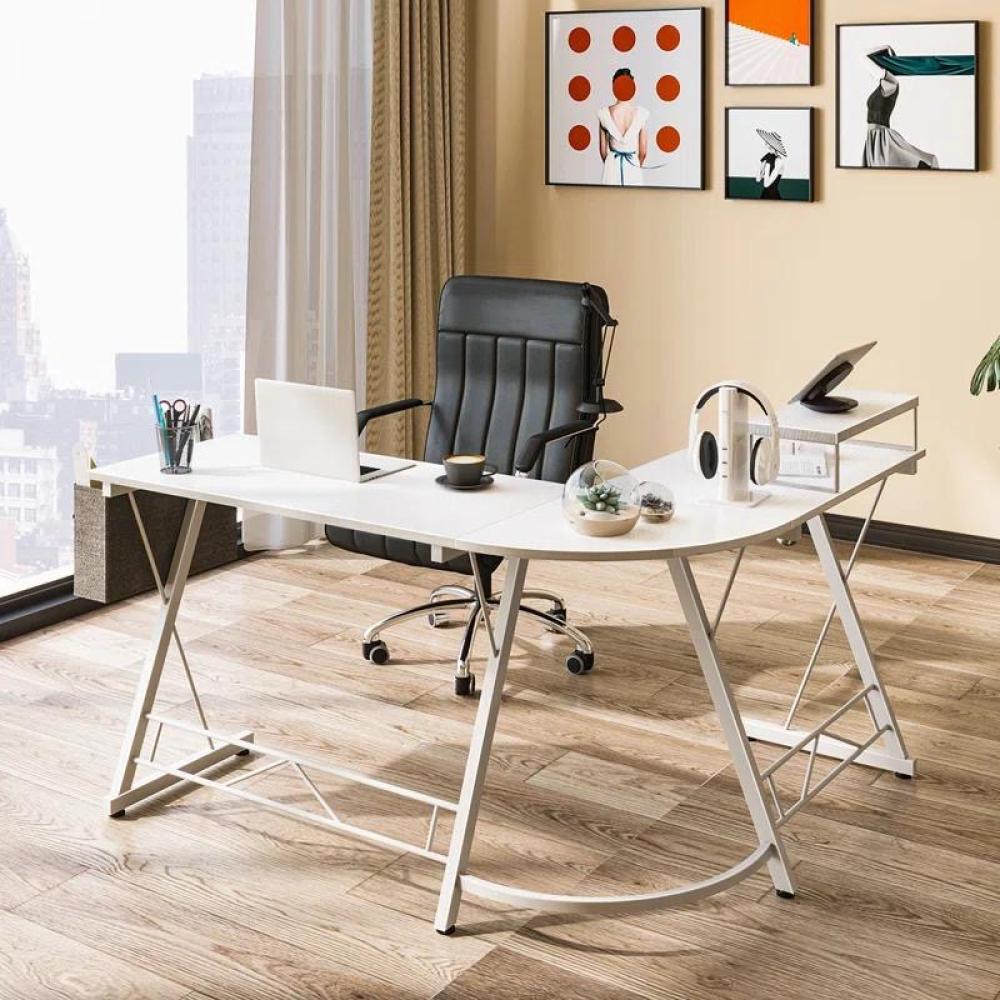 مكتب كمبيوتر بتصميم على شكل حرف L - الحل المثالي للمساحات الصغيرة