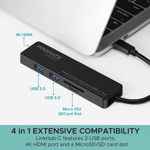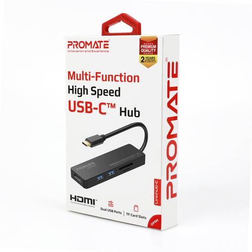 يوفر Promate LinkHub-C Hub اتصال مستقر ويزيد من إنتاجية جهازك عن طريق توسيع منفذ USB C لإمكانيات اتصال متعددة. موزع USB-C™ 5 في 1 يتميز بمنفذ HDMI 4K وفتحة بطاقة SD وفتحة بطاقة MicroSD ومنفذي USB 3.0. بسرعة نقل البيانات تصل إلى 5 جيجابت في الثانية.