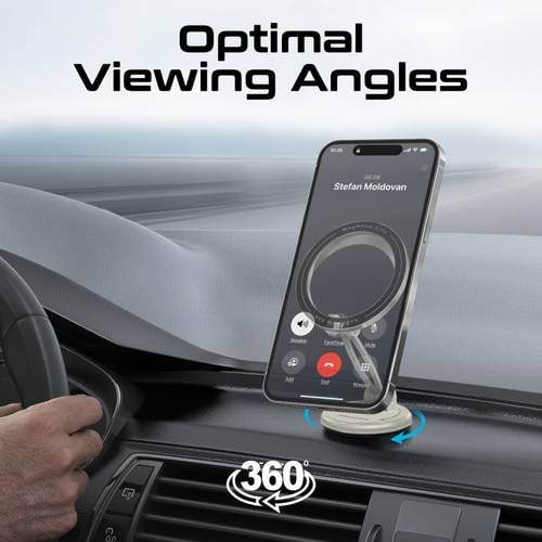 قيادة آمنة ومريحة مع حامل جوال متوافق مع تقنية ماج سيف بزاوية 360 درجة وتصميم آمن مضاد للانزلاق للوحة القيادة بإرتفاع قابل للتعديل ويشمل حلقة معدنية