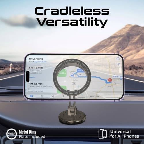 مع تصميم MagHoop-Lite الفريد الذي لا يتطلب حامل، يمكنك وضع جهازك بكل سهولة في الوضع الرأسي أو الأفقي حسب الحاجة. هذا التصميم المبتكر يبسط تجربة القيادة، مما يجعله مثالي لاستخدام الهاتف أثناء القيادة. استمتع براحة وسهولة الوصول إلى جهازك بسهولة.