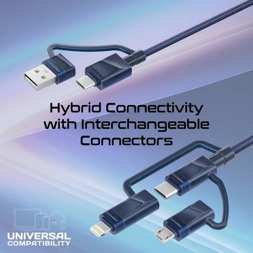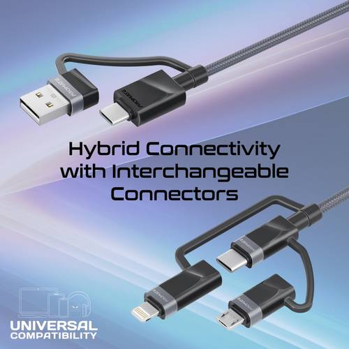 كابل شحن 6 في 1: يوفر هذا الكابل حلاً شاملاً لشحن جميع أجهزتك بفضل احتوائه على ثلاثة موصلات مختلفة: Micro USB، Lightning، وUSB-C™. بفضل تصميمه المدمج والخفيف، يمكنك استخدامه لشحن أي جهاز بسهولة ومرونة. يدعم الكابل التبديل السلس بين الأجهزة المختلفة باستخدام موصل واحد فقط، مما يجعله مثالياً للتنقل والاستخدام اليومي.