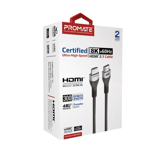 يتصل كابل Promate PrimeLink8K-300 HDMI 2.1 بمجموعة متنوعة من شاشات العرض بما في ذلك أجهزة UHDTV والشاشات. يمنحك هذا أفضل طريقة ممكنة لتجربة كل المحتوى الخاص بك من أجهزتك المفضلة.