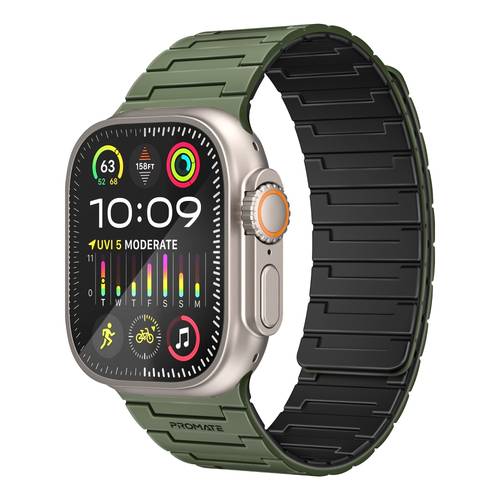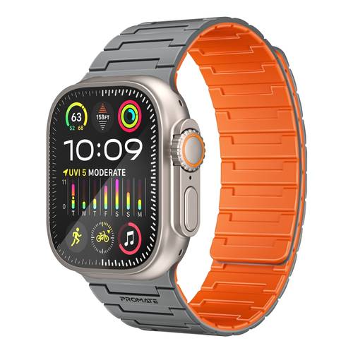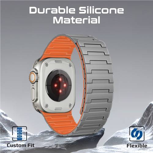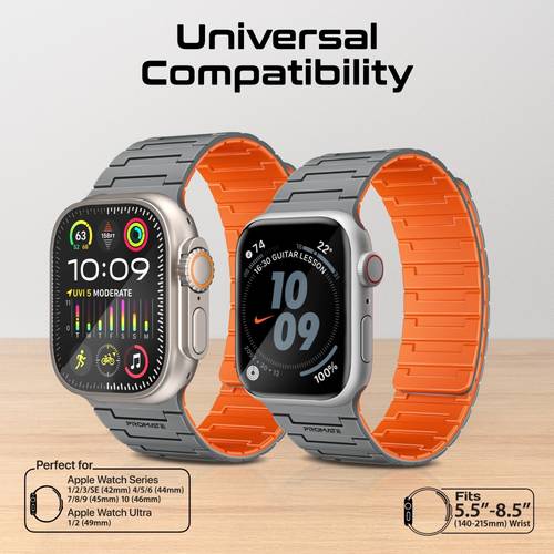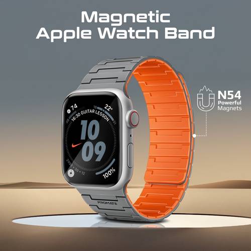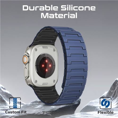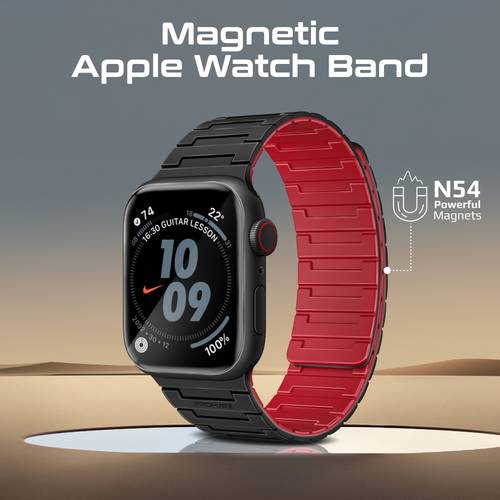 سوار مغناطيسي لساعة أبل مع تصميم عصري وحماية استثنائية، مزود بمغناطيسات N52+ قوية وطبقة حماية ضد الأشعة فوق البنفسجية. مصمم من سيليكون عالي الجودة، متوافق مع جميع أحجام ساعة أبل (42/44/45 مم/49 مم) والطرازات من Series 1 إلى Ultra 2
