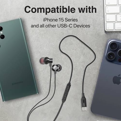 جودة صوت عالية الدقة مع سماعات ستيريو سلكية داخل الأذن، المزودة بمنفذ USB-C لاتصال متميز مع تصميم مريح وملائم يجعلها مثالية للاستخدام اليومي مع جميع أجهزتك المحمولة والأجهزة اللوحية المزودة بمنفذ USB-C