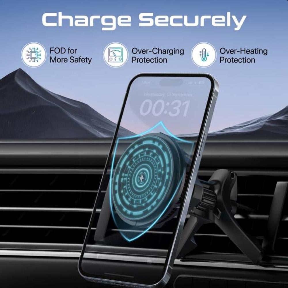 تمتع بتجربة الراحة والسلامة الفائقة أثناء قيادتك مع حامل الشحن المبتكر المتوافق مع تقنية ماج سيف بقوة 15 واط. هذا الابتكار الرائد يقدم للعالم أول نظام تبريد نصف موصل، مصمم خصيصًا للتعامل مع ارتفاع درجة الحرارة في البيئات ذات درجات حرارة عالية. استفد من التبريد السريع للهواتف المحمولة بنسبة تصل إلى 15 درجة مئوية أثناء الشحن، مما يقلل بشكل فعال من المشاكل الشائعة مثل حماية الحرارة الزائدة أو فشل الشحن في ظروف السيارة الحارة.