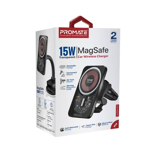 يعد LucidMount-15 حامل سيارة لاسلكي مذهل وحل الشحن المثالي، وهو مصمم لتعزيز تجربة القيادة الخاصة بك. إن حامل السيارة الأنيق هذا ذو التصميم الشفاف الفريد وحافة الألومنيوم وتقنية MagSafe يجعله ملحقًا مثاليًا لسيارتك. اجعل رحلتك سلسة، حيث تتيح لك المغناطيسات القوية الموجودة في LucidMount-15 إمكانية تثبيت الأجهزة بسرعة والحفاظ عليها ثابتة خلال أصعب التضاريس. يتيح لك التصميم بدون حامل عرض الأجهزة المتصلة بأي زاوية. استمتع بشحن موثوق وعالي السرعة وإمكانية الوصول بدون استخدام اليدين مع LucidMount-15.