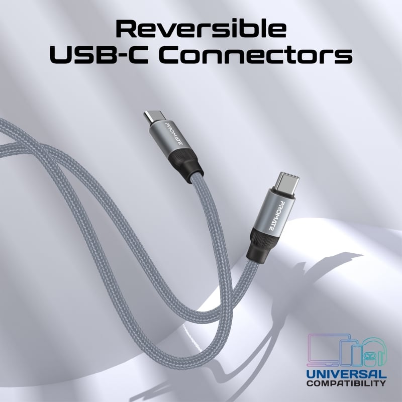 موصلات USB-C™ ذات وجهين على كلا الجانبين: مع موصلات USB-C™ ذات وجهين على طرفي الكابل، لم تعد بحاجة إلى القلق بشأن التحسس للعثور على الاتجاه الصحيح عند توصيل جهازك. يضمن هذا التصميم سهل الاستخدام اتصالاً خاليًا من المتاعب مما يسمح لك بتوصيل الكابل بثقة وسلاسة في كل مرة.