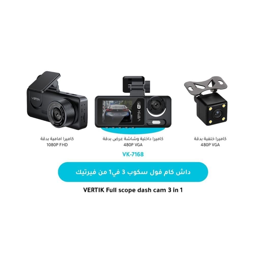 كاميرا VERTIK Full Scope 3 in 1 هي الحل الشامل لمراقبة الطريق داخل وخارج سيارتك، حيث توفر تسجيلًا عالي الجودة ورؤية شاملة من الأمام، الخلف، والداخل، وتعمل بفعالية حتى في الظروف الصعبة، ما يجعلها رفيقًا موثوقًا لسلامتك وأمانك أثناء القيادة.