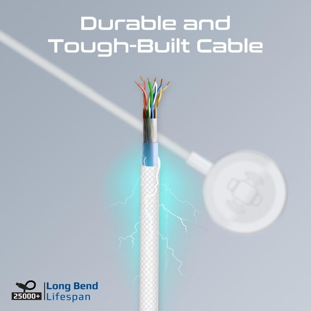 - كابل متين وقوي : مصمم بشكل قوي باستخدام الألمنيوم المتين والبلاستيك المتين، فضلاً عن مادة TPE، لتمتع بمتانة وموثوقية استثنائية.