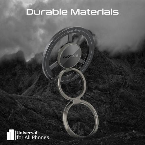 حافظ على هاتفك الذكي بأمان مع حامل SnapRing المغناطيسي من Promate. يدعم تقنية ماج سيف MagSafe ويتيح لك التبديل بين الوضعين الأفقي والرأسي مع دوران بزاوية 360 درجة. يتميز بتصميم قابل للطي وسهولة الحمل، وصوت نقر مميز، بالإضافة إلى سطح مرآة ومواد متينة، ليكون رفيقك المثالي لحياتك اليومية.