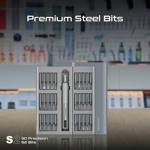 30 لقمة S2 دقيقة: يأتي مفك البراغي الصغير هذا مزودًا بـ 30 لقمة فولاذية S2 عالية الجودة مع طبقة مزدوجة مضادة للتآكل تجعله متينًا ضد التآكل والتمزق.