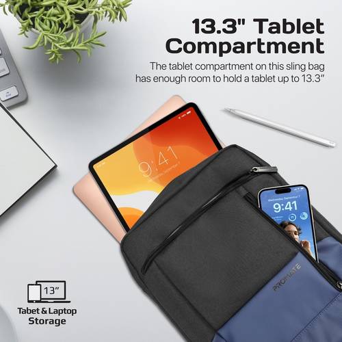 • حجرة الكمبيوتر اللوحي/الكمبيوتر المحمول مقاس 13.3 بوصة: تحتوي حجرة الكمبيوتر اللوحي الموجودة في هذه الحقيبة على مساحة كافية لاستيعاب جهاز لوحي يصل حجمه إلى 13.3 بوصة.