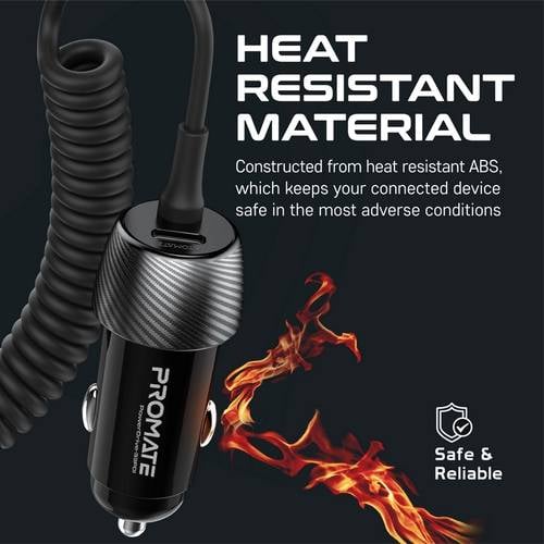 يتميز شاحن السيارة بتصميم مضغوط مصنوع من مواد عالية الجودة للحفاظ على المساحة وضمان سهولة الاستخدام.